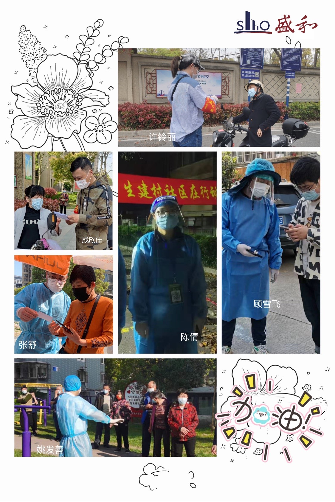 周閩珠、葉青紅、陳茂華、何琖等經營層領導都連續多日在觀南社區、橫河社區、城南社區的志愿點服務。